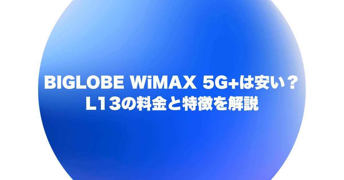 今回はBIGLOBE WiMAX 5G+でホームルーターSpeedWiMAX L13を利用した際の、月額料金や特徴をわかりやすく紹介します。
